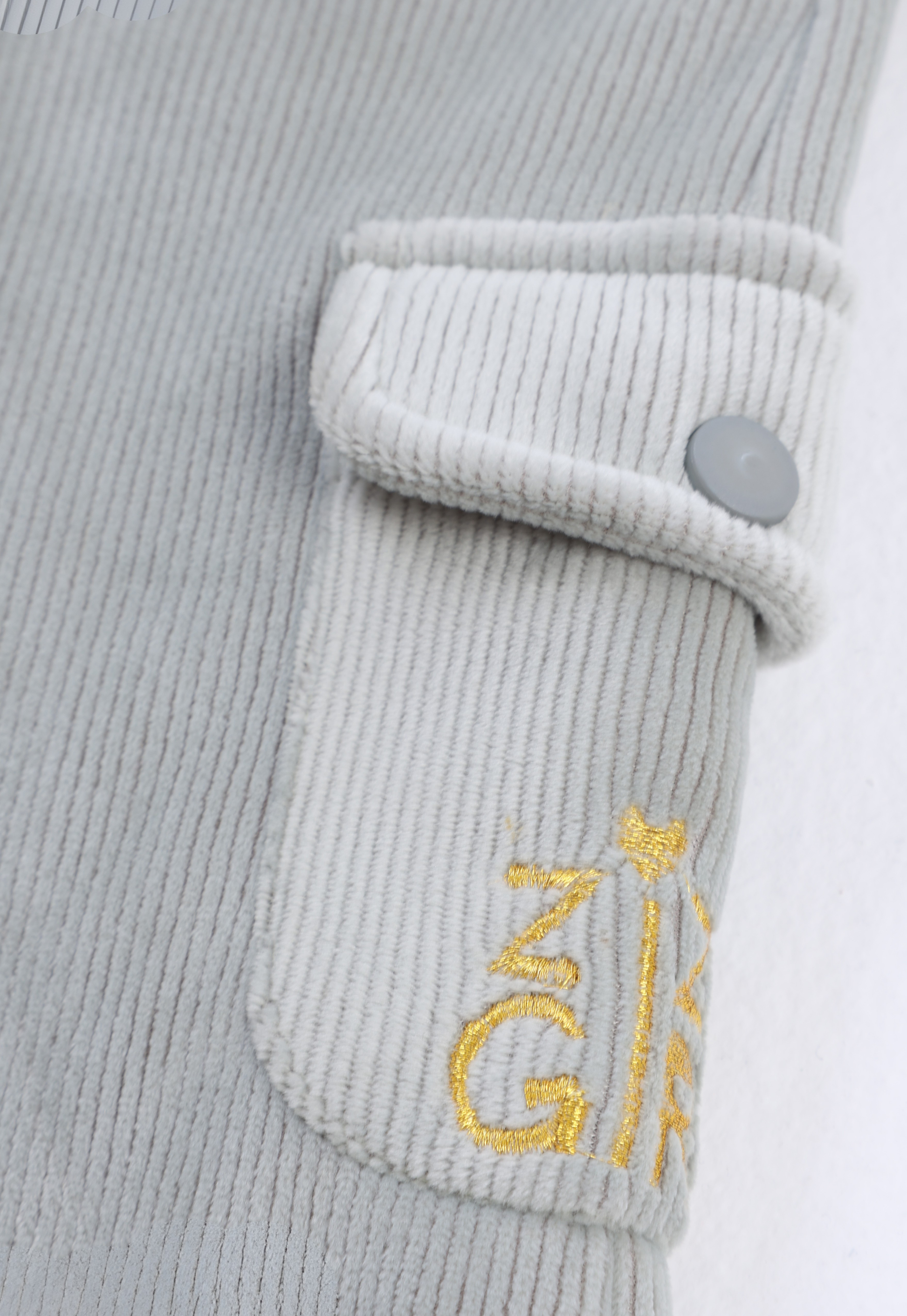 Corduroy pants with a side cargo pocket for a practical and distinctive style.
