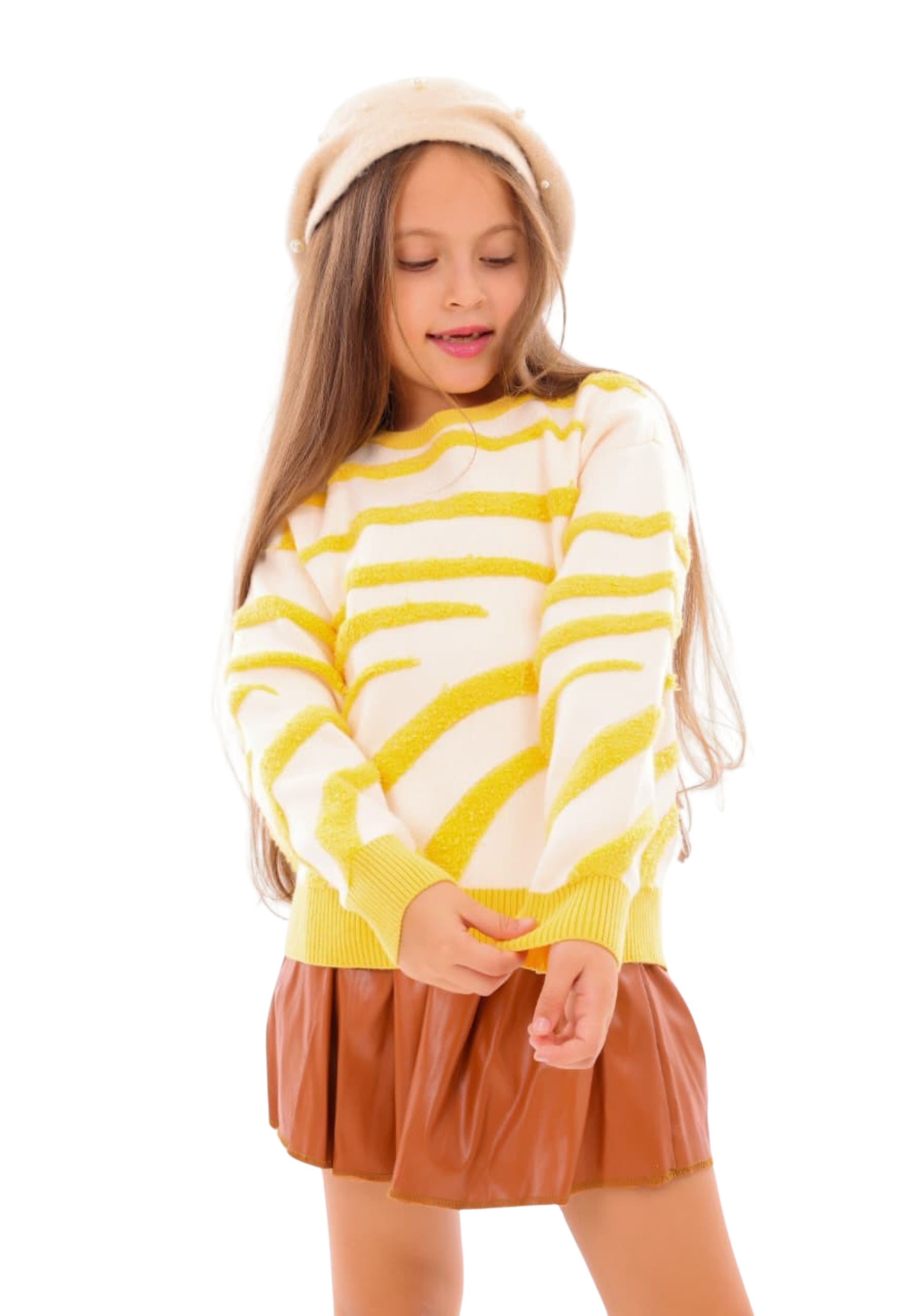 Girls' knitted sweater with a soft zebra print (372)