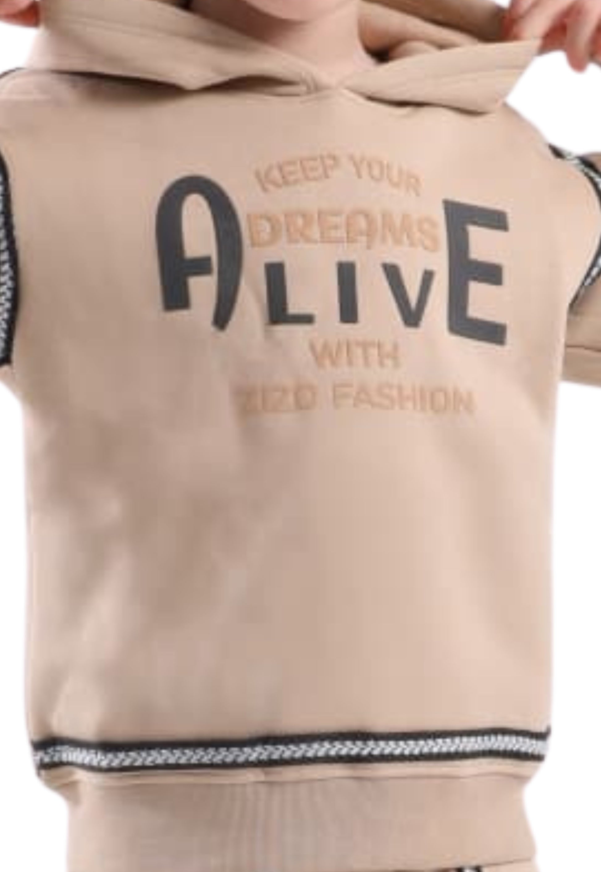 The top piece is a "KEEP YOUR DREAMS ALIVE" embossed print hoodie that adds a touch of luxury and boldness to the look.