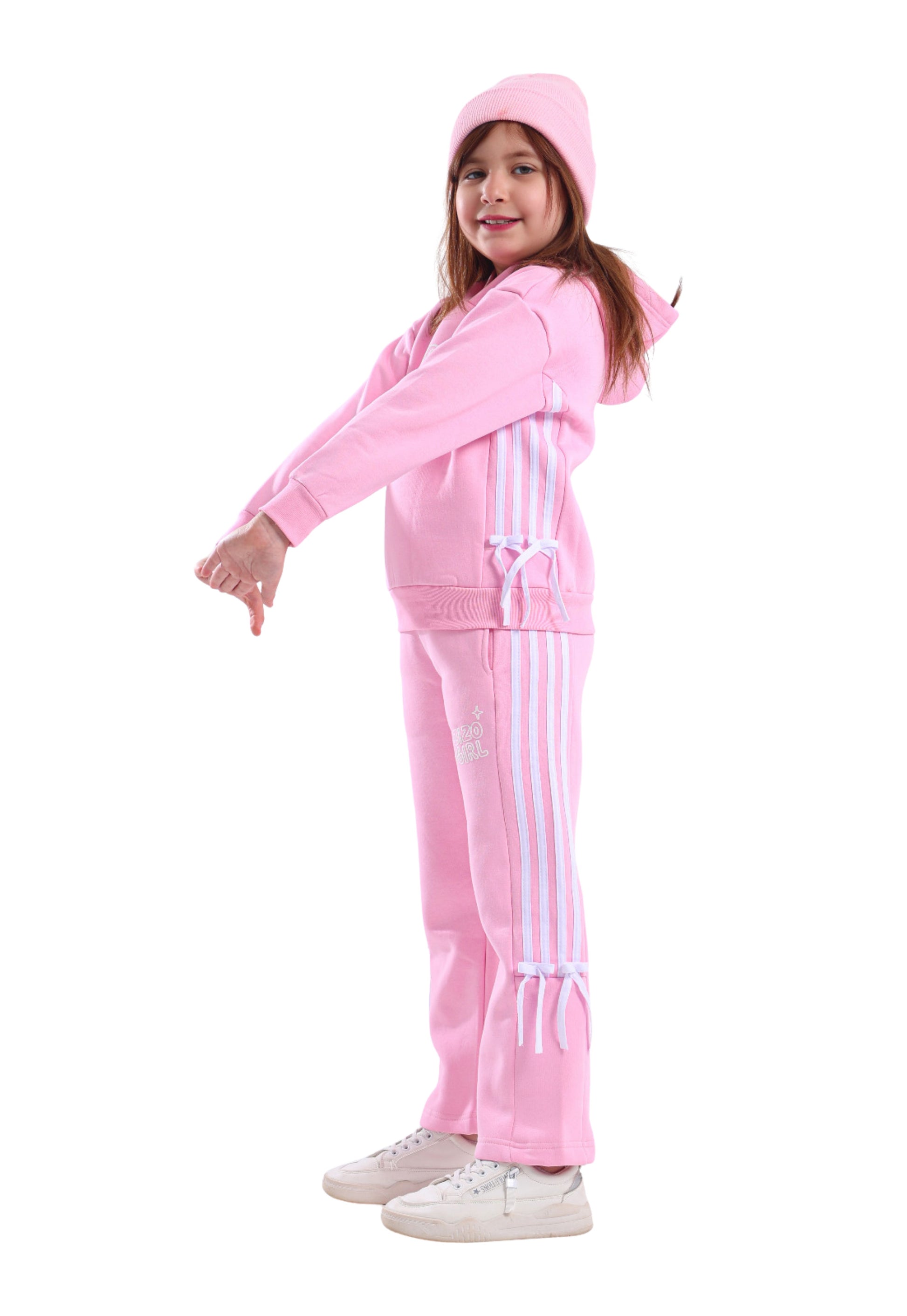 طقم بيجاما بناتي ناعم ودافئ بخامة ميلتون قطن مبطن ومعالج ضد الوبرة، تصميم جانبي بشرائط وبريطة لطيفة تضيف شكل أنيق ومختلف.