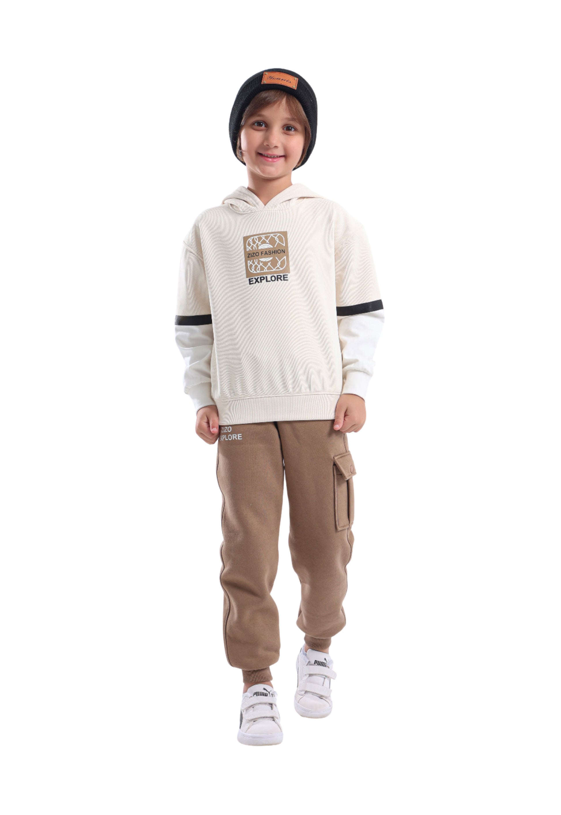 هودي ميلتون قطن مبطن خامته ناعمة وثابتة بعد الغسيل، بتصميم كاجوال مطبوع على الصدر وأكمام بلون مزدوج.