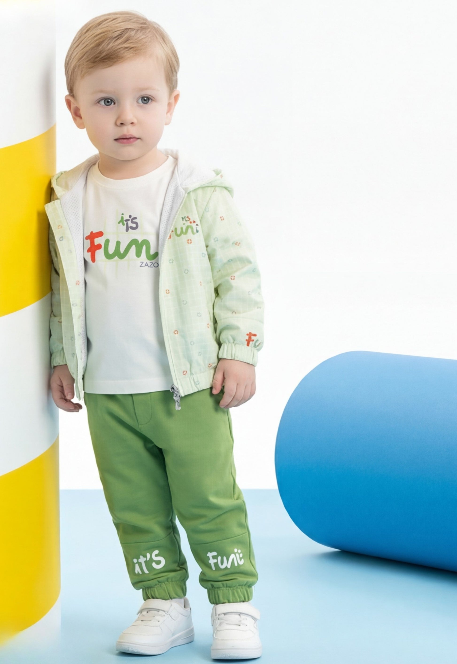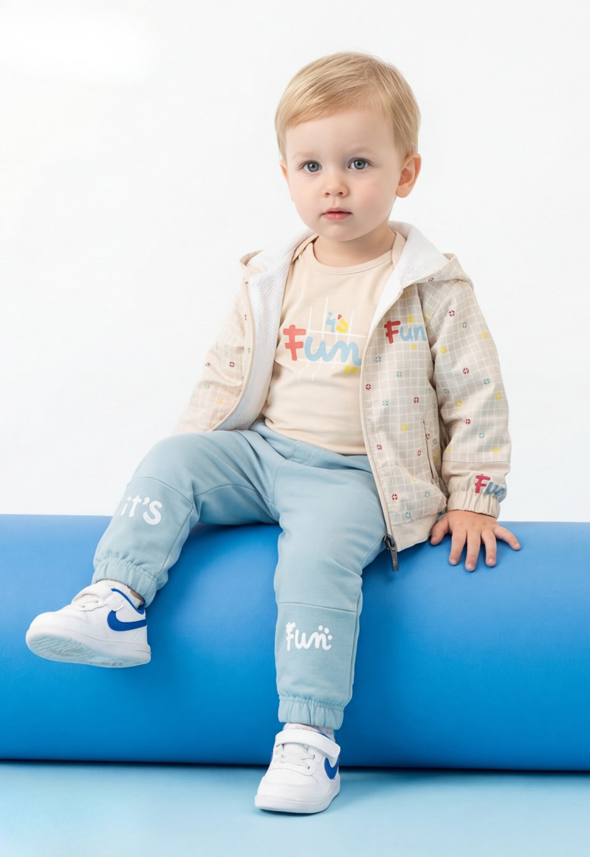 تيشيرت بطبعة “Fun” مرحة تضيف شكل طفولي جذاب.