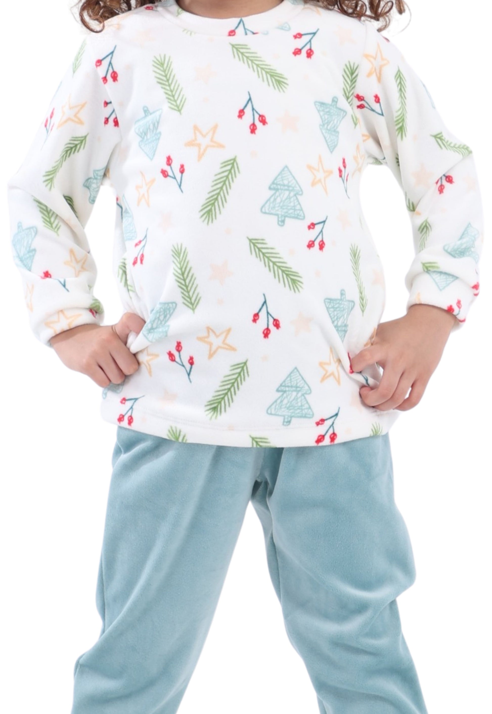 تتكوّن من بلوفر قطيفة بطبعة شتوية برسومات شجر ونجمات ملونة، مع بنطلون قطيفة ناعم بخامة عالية الجودة تمنح طفلتك الدفء والراحة طول اليوم.