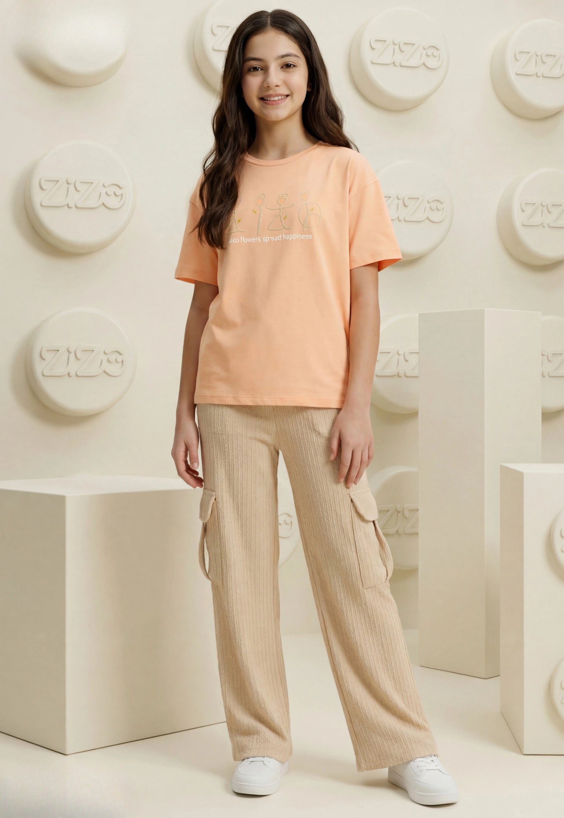 طقم كامل وشيك – تيشيرت + بنطلون بإطلالة ناعمة ومتكاملة
