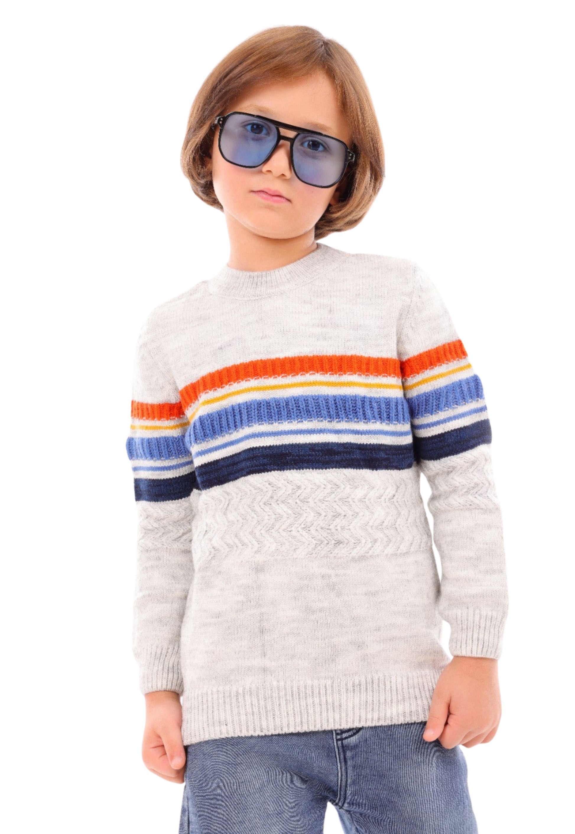 بلوفر أولادي تريكو بخطوط ملونة جانبية (324)