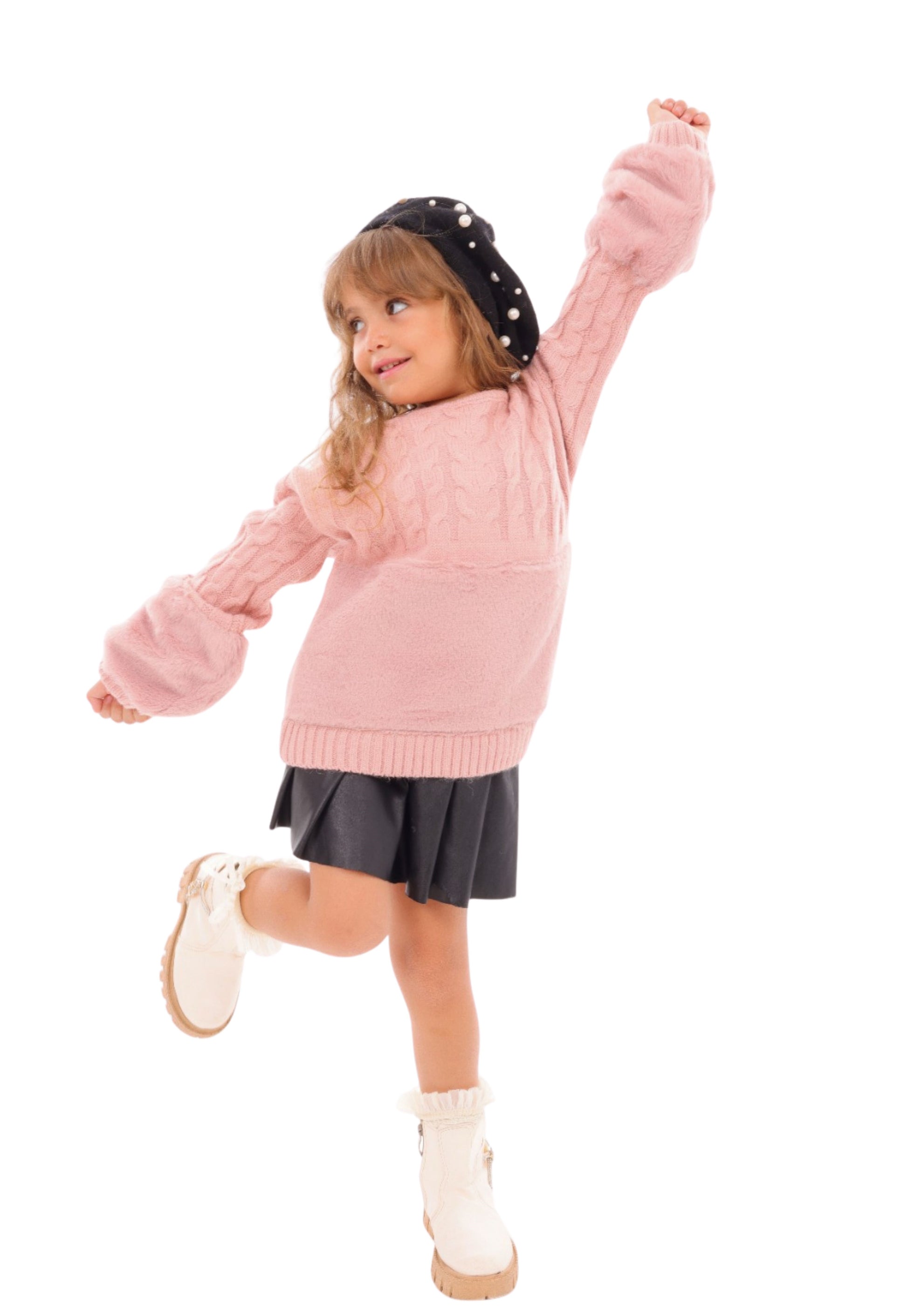 بلوفر تريكو بناتي بتصميم كاجوال أنيق وأكمام منفوخة تضيف لمسة لطيفة وملفتة في نفس الوقت.
