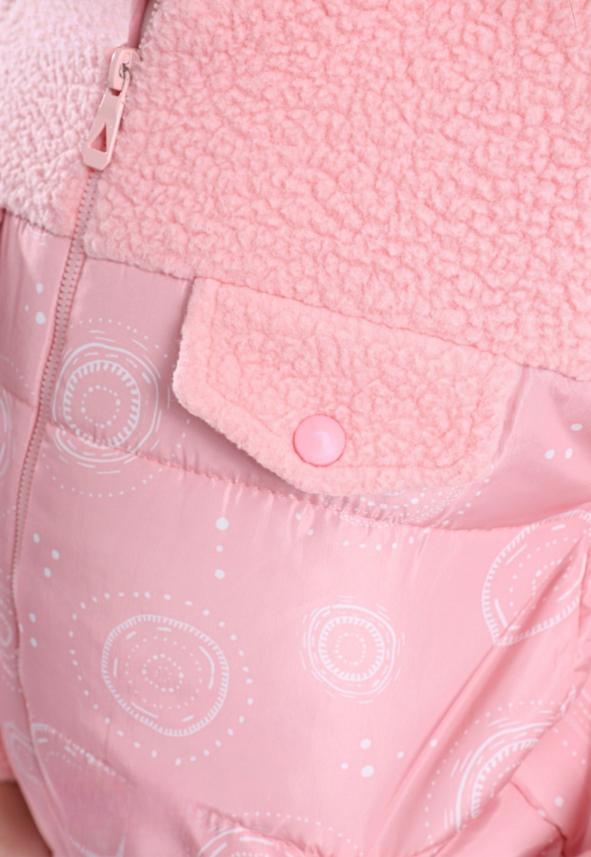 الجاكيت من Sherpa Fur مع بطانة خفيفة Quilted Polyester لإحساس دافئ وفخم،